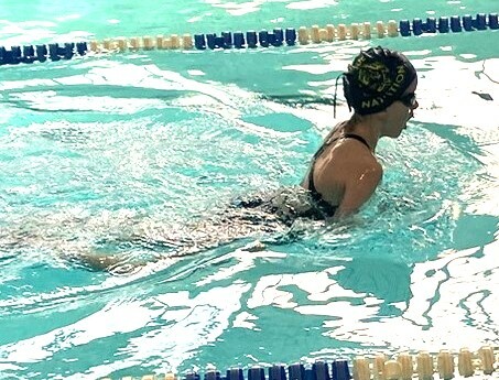 Apolline aborde cette deuxième étape du Championnat Départemental en gagnant sa série du 100 4nages en 01.49.44 avec 10 secondes d'amélioration, ce qui lui vaudra la Médaille de Bronze.