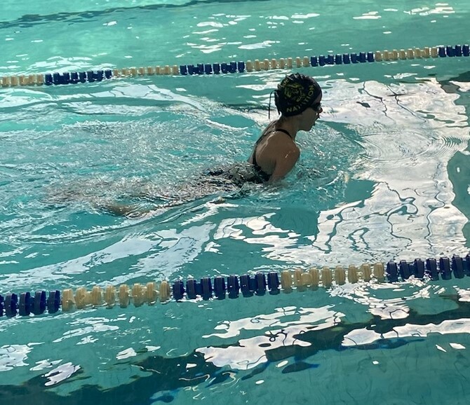 Apolline aborde cette deuxième étape du Championnat Départemental en gagnant sa série du 100 4nages en 01.49.44 avec 10 secondes d'amélioration, ce qui lui vaudra la Médaille de Bronze.